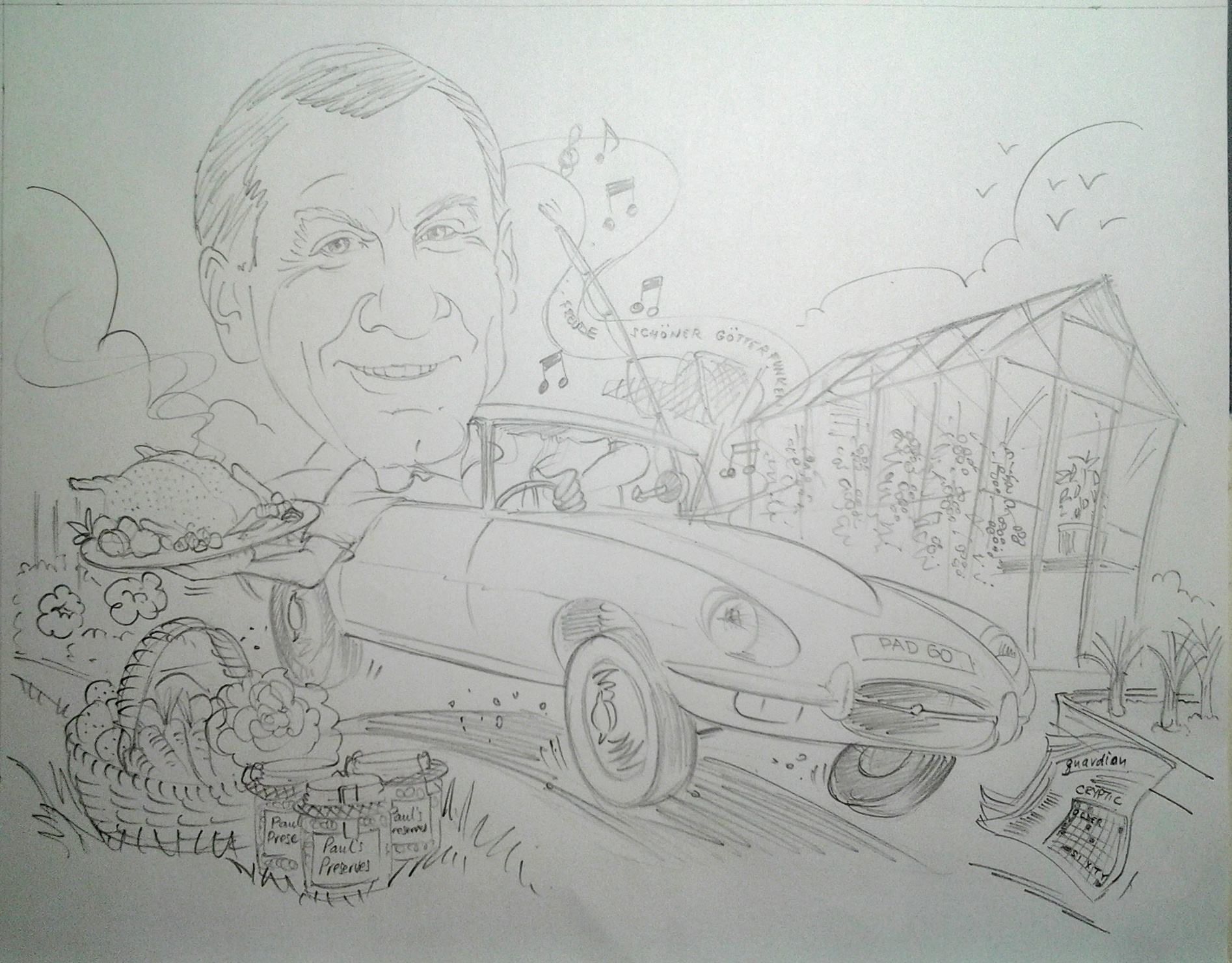 E type Jag man sketch